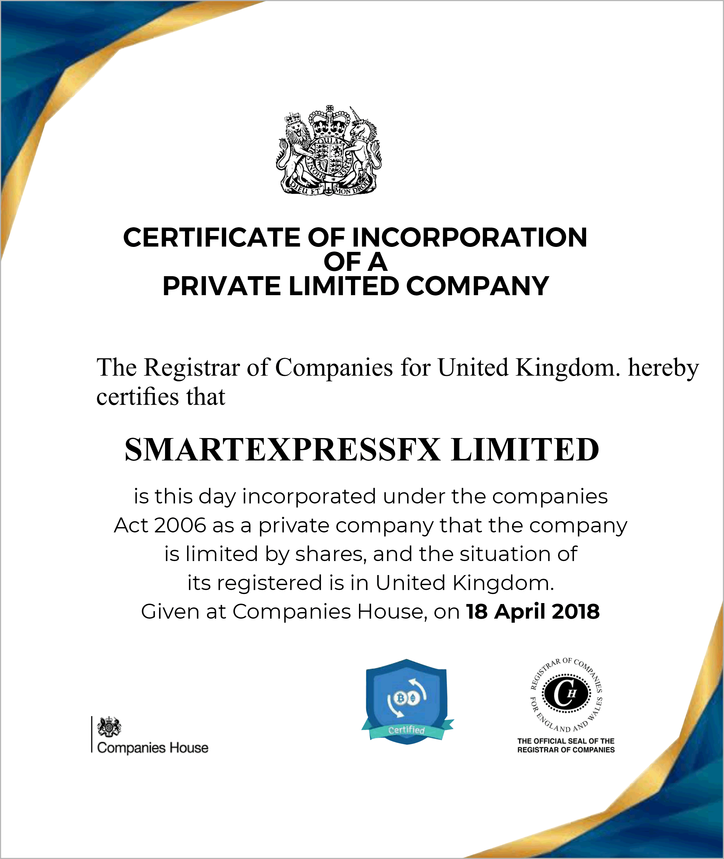View Certificate of IncoporationSmartexpressfx profitable and Trusted investment program, established by a strong team of highly skilled traders and investment consultants in the offline and online investment market.